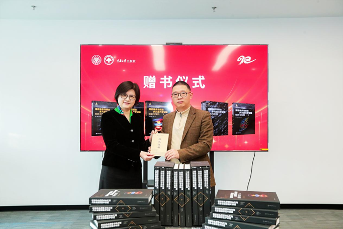 发布会期间,举行了赠书仪式以推进学术知识在大学的传承与传播。重庆大学出版社社长陈晓阳代表出版社向重庆大学图书馆赠书,重庆大学图书馆馆长魏群义代表图书馆接受赠书,并向出版社回赠“馆藏证书”,以示谢意。